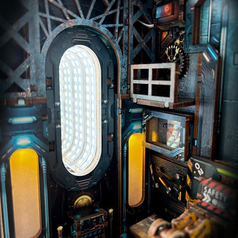 This book nook kit features a dual-layer design. blending hardcore mechanics with American vintage style to showcase its unique charm.