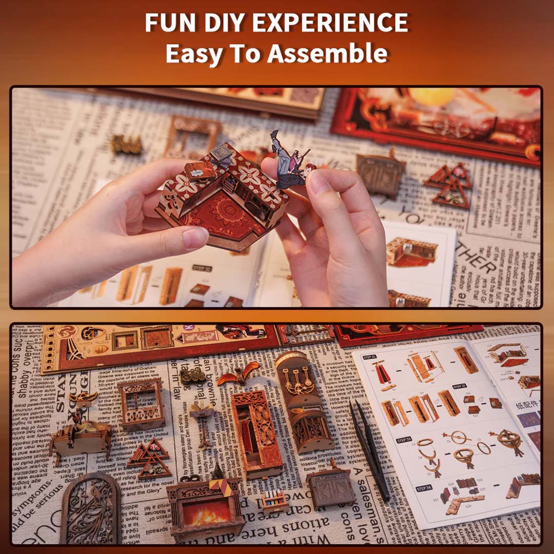 - Start the magical DIY experience in the process of assembling the book nook! Here you will feel the creativity of each piece. Use ingenuity and patience to create your miniature magical world!