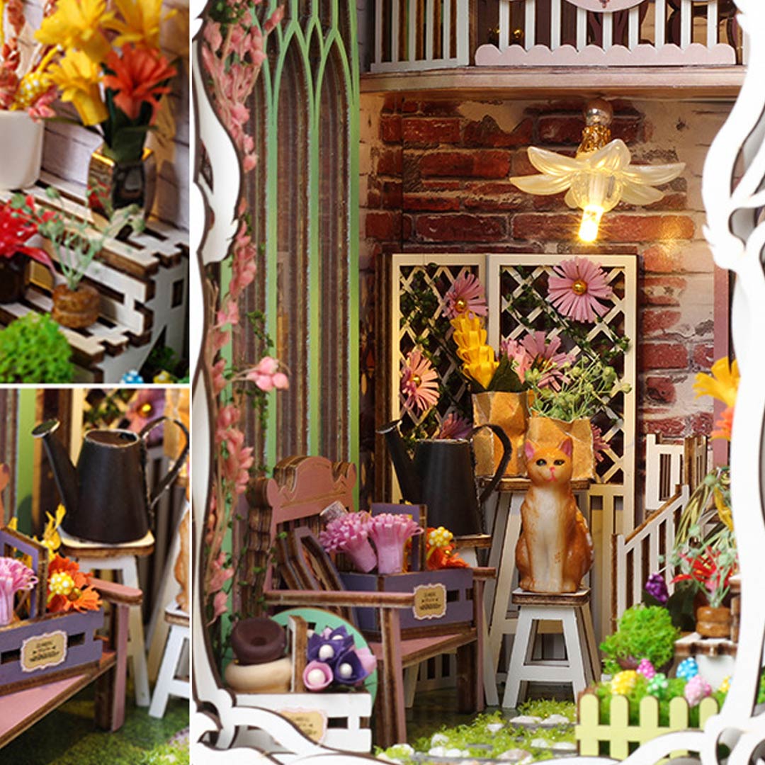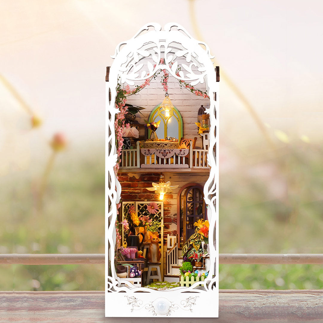 Step into the elegant Flower House with our book nook kit. featuring charming stone pathways. translucent windows. and beautiful pink vines. Embrace the exquisite details and ambiance. and experience the therapeutic power of the miniature world.