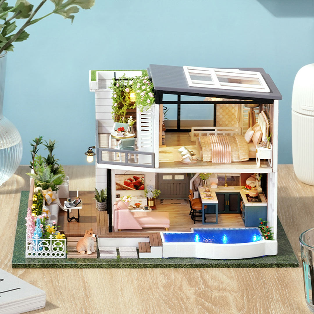This dollhouse kit is not a toy. but a challenging handmade craft kit. A beautiful mini house will come out after finishing. Perfect for home decoration and collection.