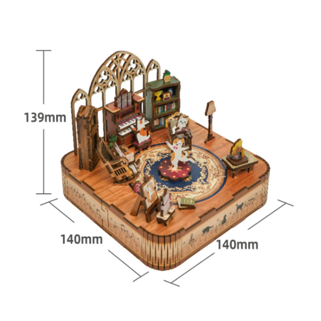 Experience the delight of crafting. music. and feline charm all in one with this cute music box. Let the melodies whisk you away to a realm where creativity knows no bounds and the joy of assembly resonates with every note.