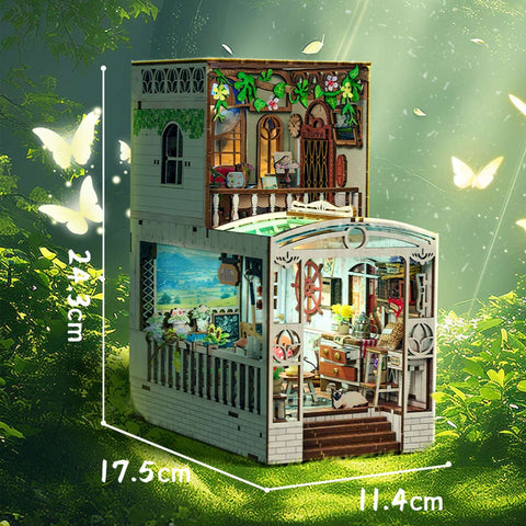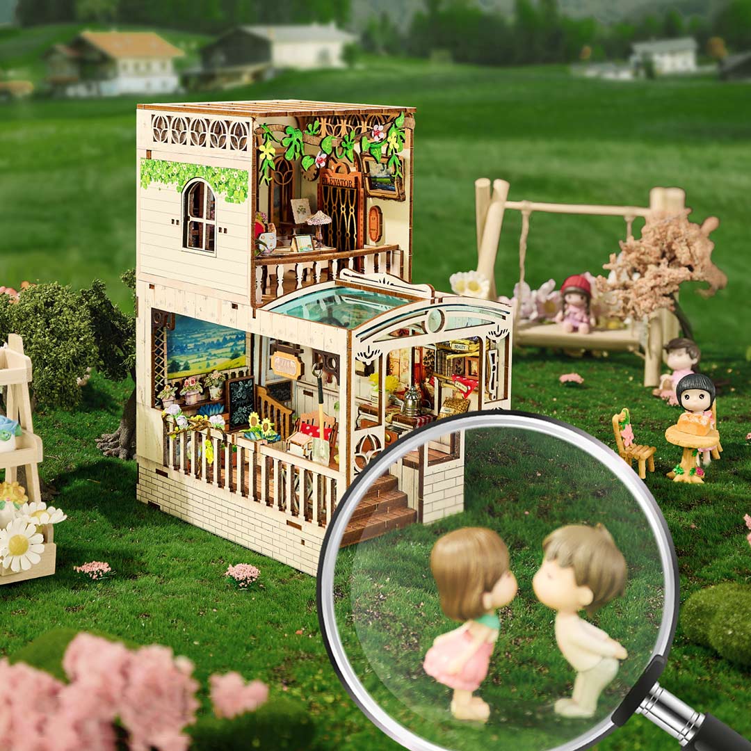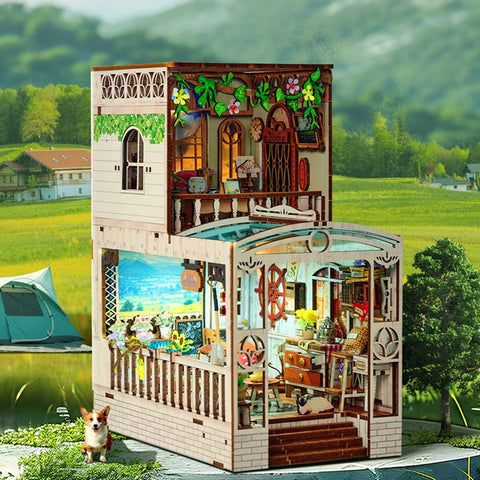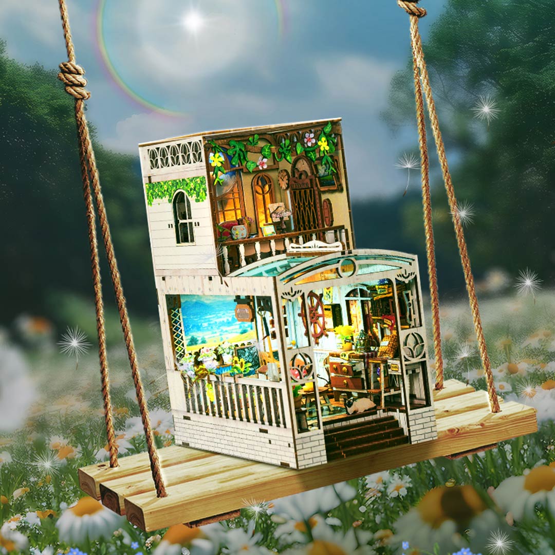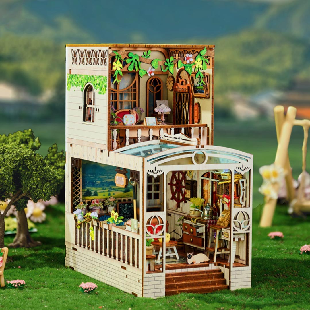 This charming two-story miniature kit combines rustic style with intricate details to capture the essence of a peaceful countryside getaway.