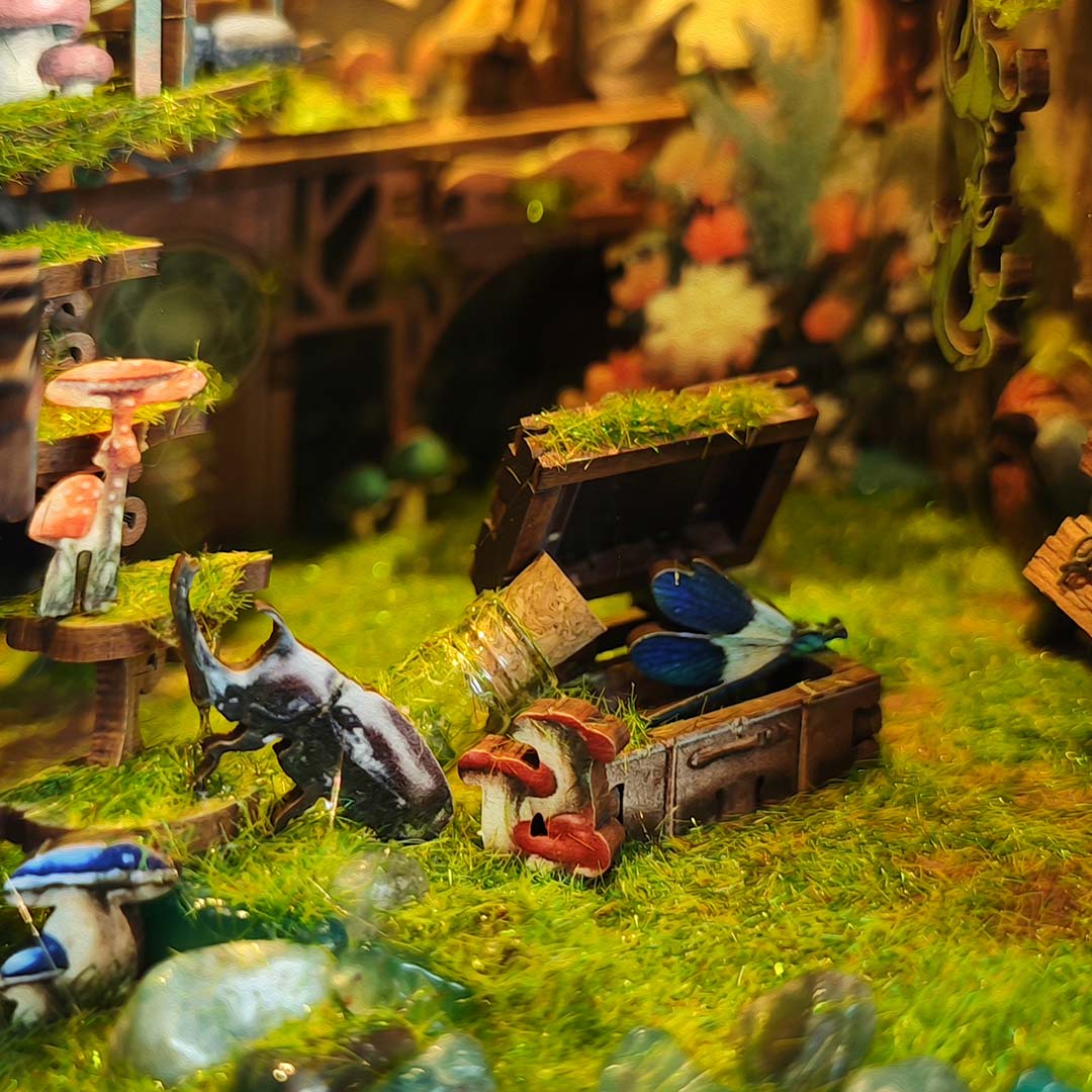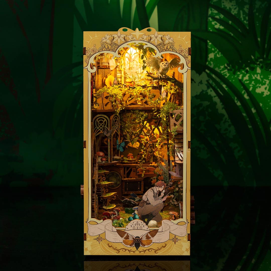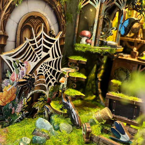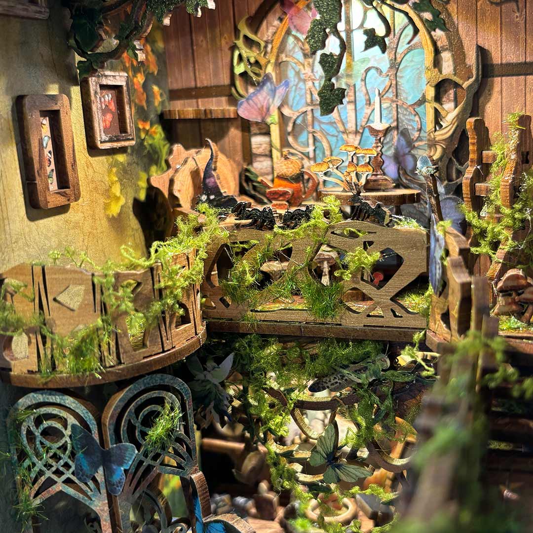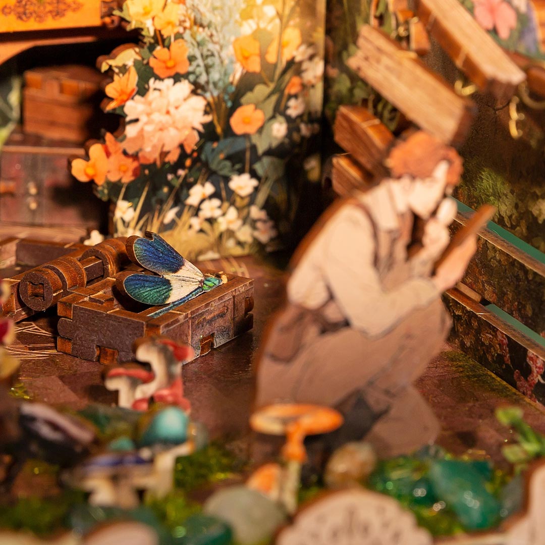 This is a handmade masterpiece brimming with butterflies. vines. flowers. and an array of tiny insects. As scientists gather data on these creatures. the book nook immerses you in a captivating world where nature’s beauty and scientific exploration intertwine. Every detail transports us into a realm of discovery and charm!