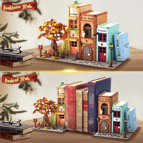 You can create some original houses and place them on your bookshelf for display. or use their dual purpose as bookends. and split the blocks down the middle! You can accommodate your favorite books in the most decorative way possible.