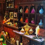 The successfully brewed potions are displayed on the magic potion shelves. If you want one. you’ll have to trade in your secrets.
