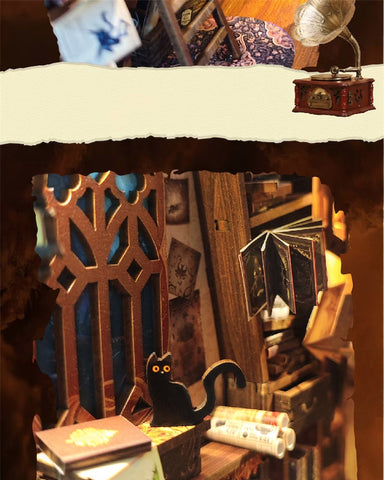 The book nook kit is made of high-quality wood. which is sturdy. durable. and easy to take out. We create the 3D handcrafted miniature bookshelf insert decor by the story about magic world. The realistic setting of the scene perfectly restores the miniature world in the book nook.