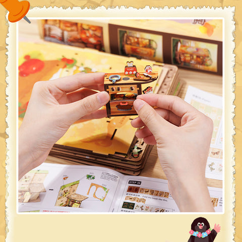 Step into the enchanting Mole’s Apartment. where joy fills every corner. Each floor radiates unique creativity and is adorned with vibrant décor. In this tiny world. moles and small animals live. play. and share delightful meals. creating a happy atmosphere with every tiny detail.