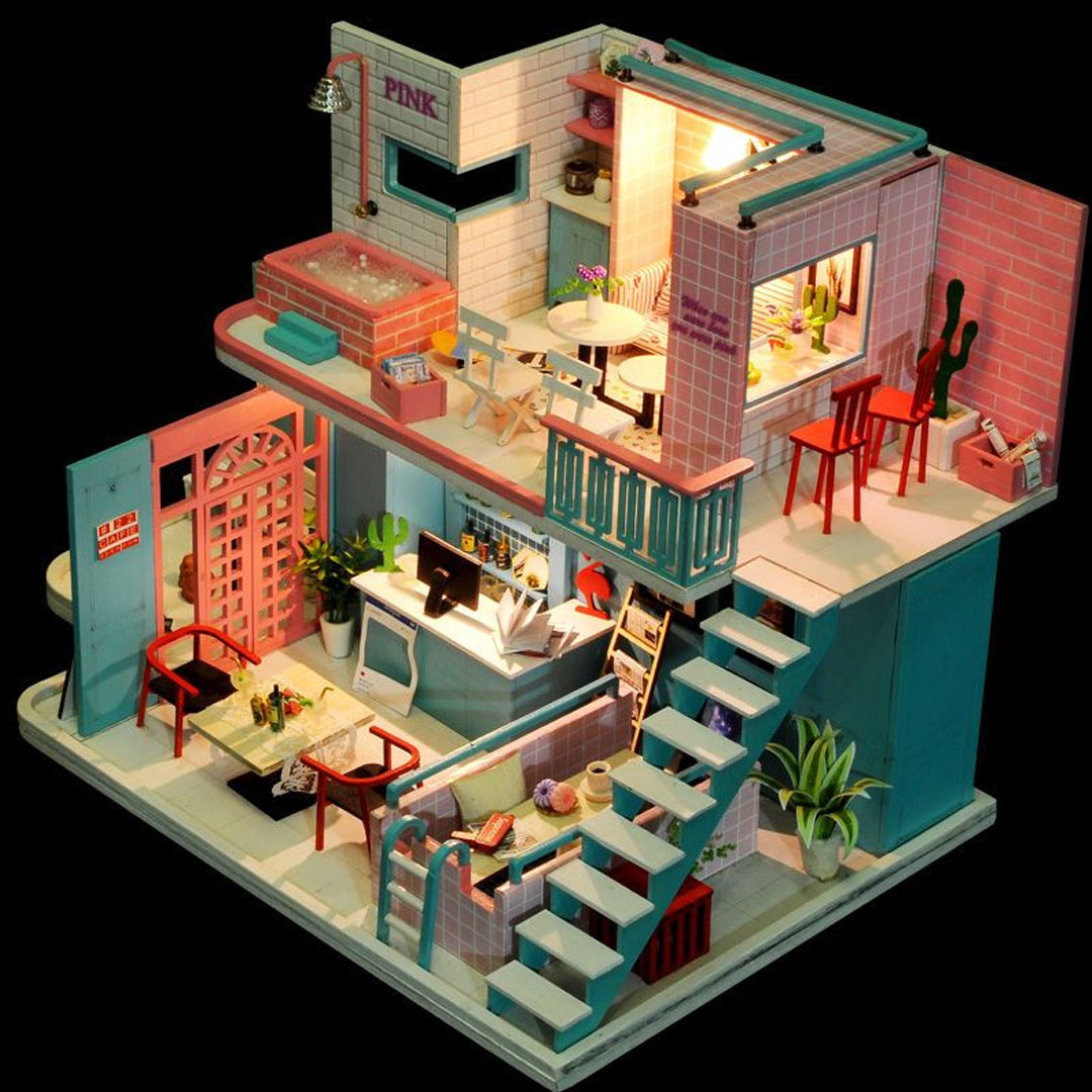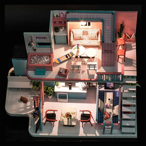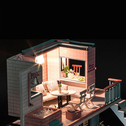 Pink Loft Dollhouse Miniature House Kit