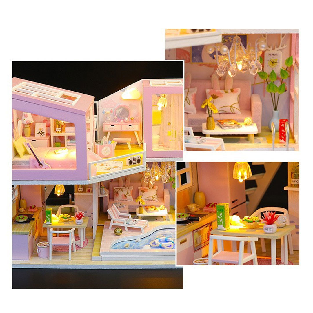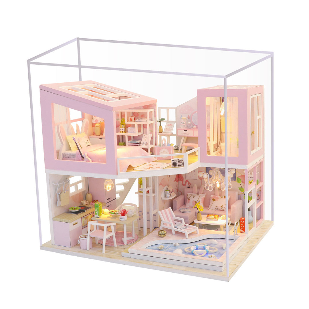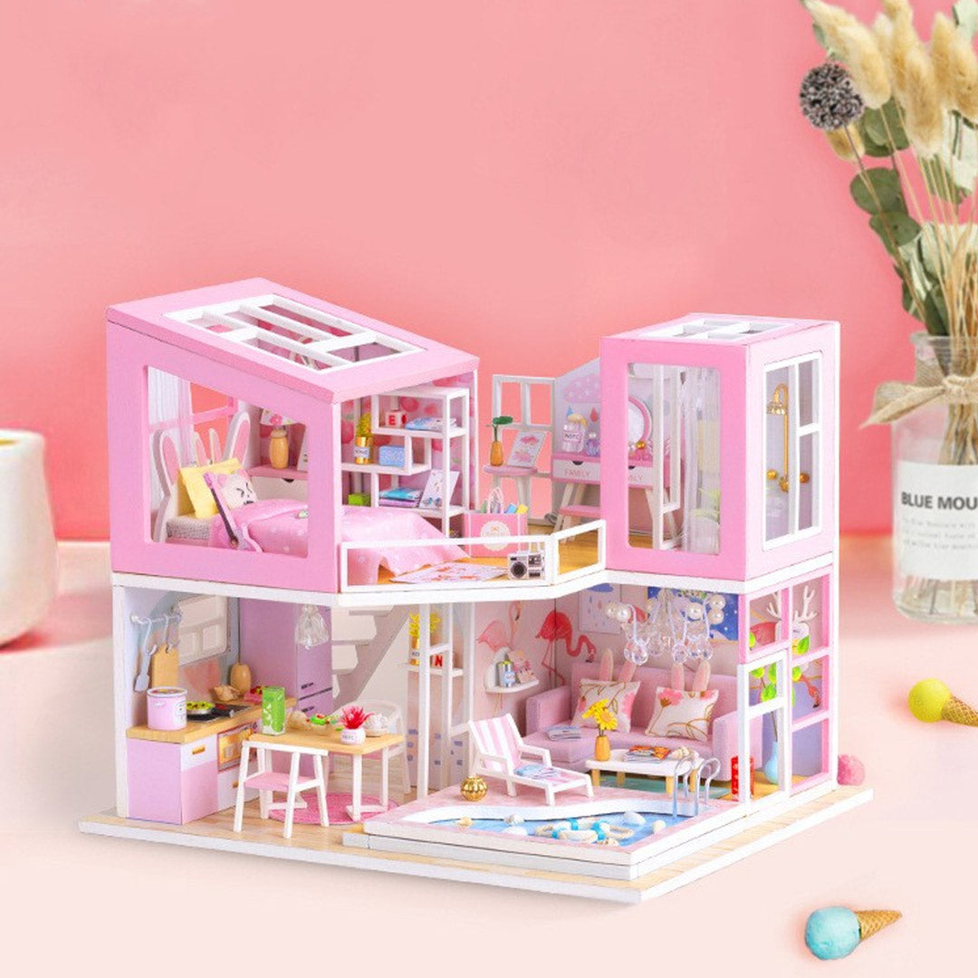 Pink House DIY Wooden Miniature House Kit