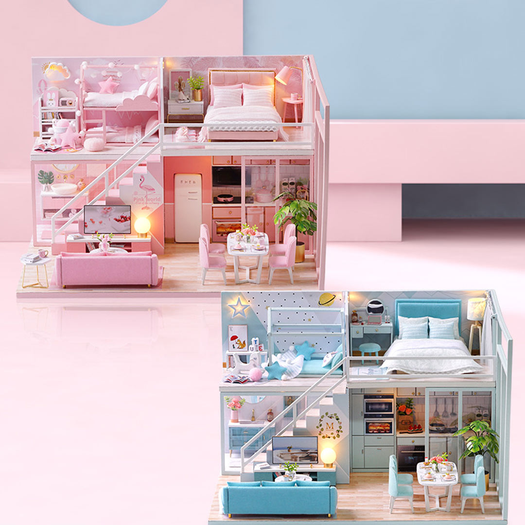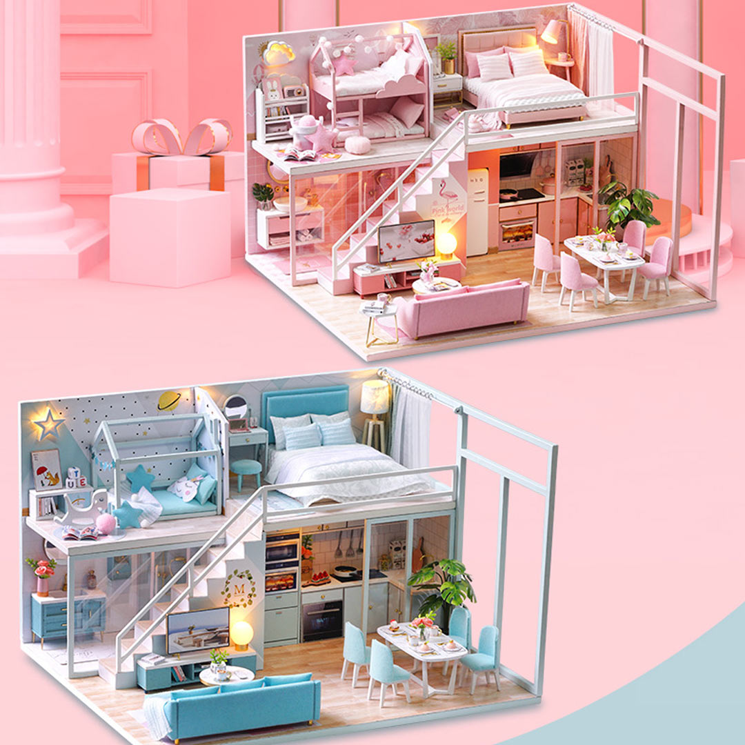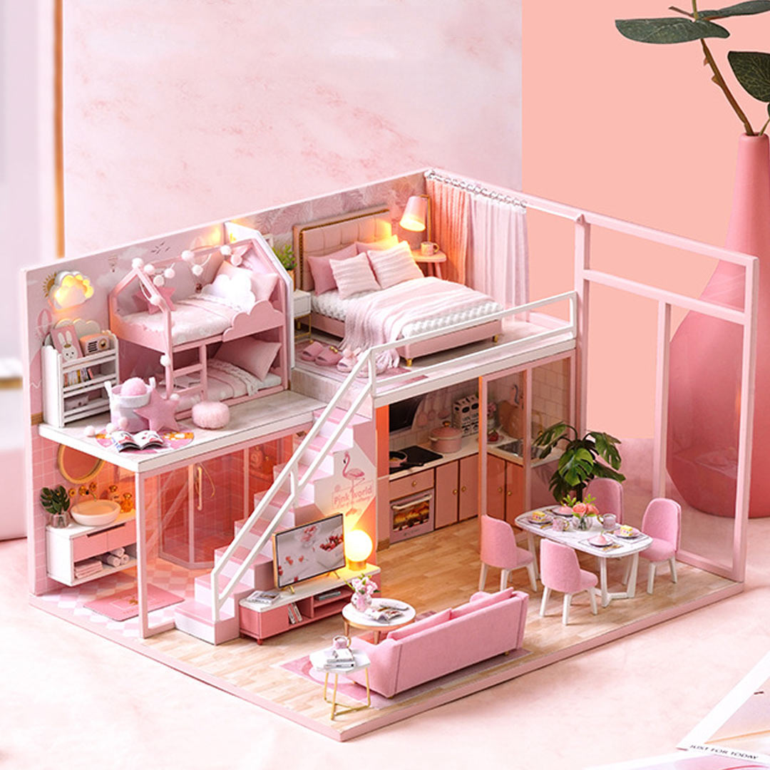 Pink Loft Dollhouse Miniature House Kit