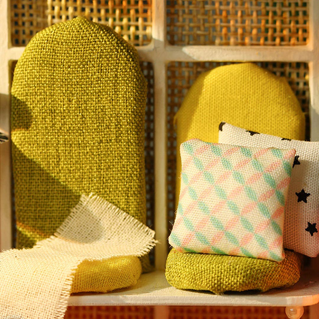 DIY toy house kit material: safety material such as wood. paper. plastic. and cloth. toy house divide into several material packages. pasted from paper to objects. sewn. glued. and assembled. all functions are handmade.