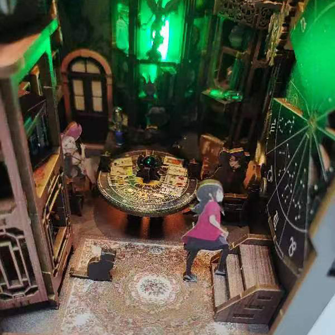 Immerse yourself in the rich symbolism of tarot cards as you explore the beautifully crafted miniature scenes within this book nook. Each detail. from the mystical figures to the ethereal landscapes. is carefully designed to evoke a sense of magic and mystery.