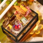Step inside to find a cozy counter stocked with miniature pastries. bread. and charming tea accessories. Every detail invites you to imagine the aroma of freshly brewed tea and baked goods.