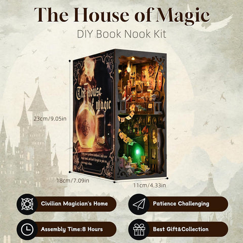 Designed for those who love both crafting and the mystical. The House of Magic Book Nook Kit offers a unique. hands-on experience. As you assemble this intricate bookshelf model. you’ll not only be creating a functional piece of art but also a vivid story that unfolds with every detail you add.
