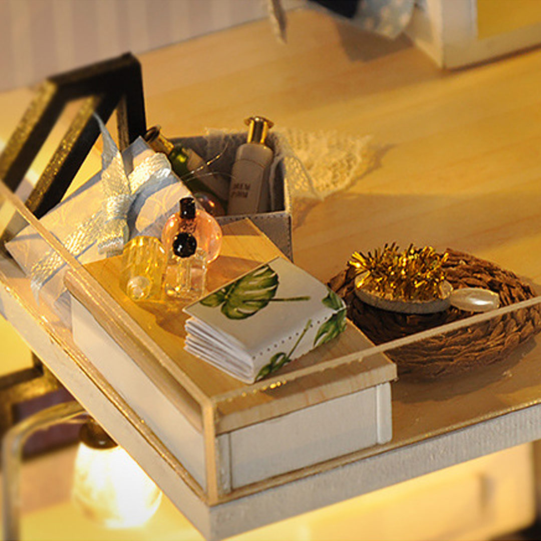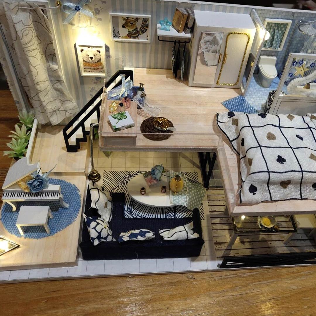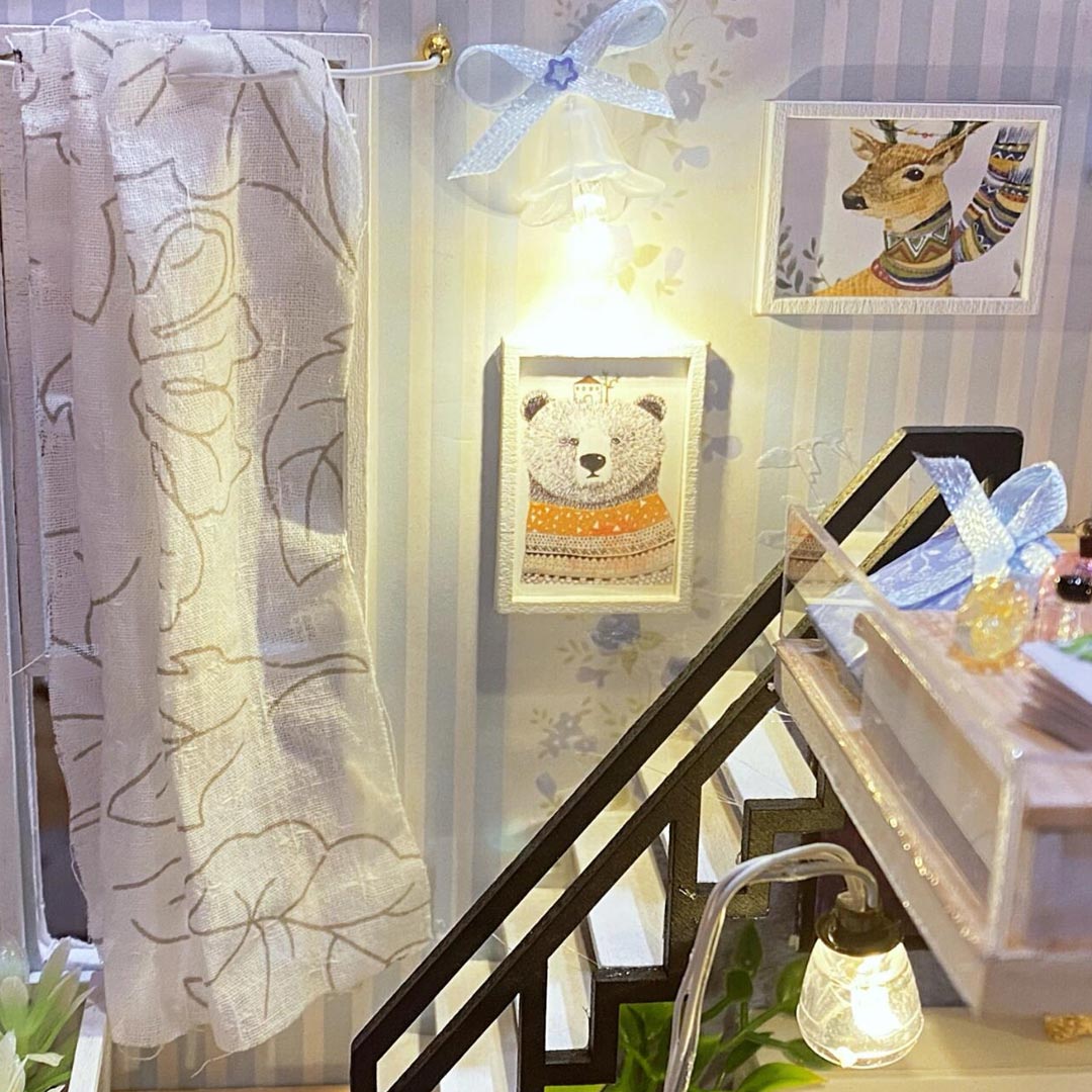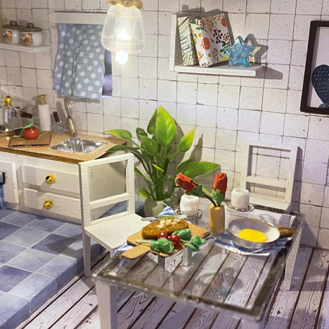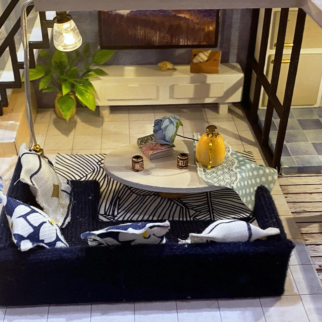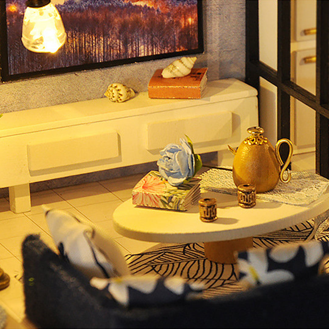 Immerse yourself in the cozy Loft DIY Miniature Dollhouse Kit. With soft lighting casting a gentle glow. open the window to feel the soothing sea breeze. and begin your journey of creating a beautiful life from the comfort of your own miniature home.