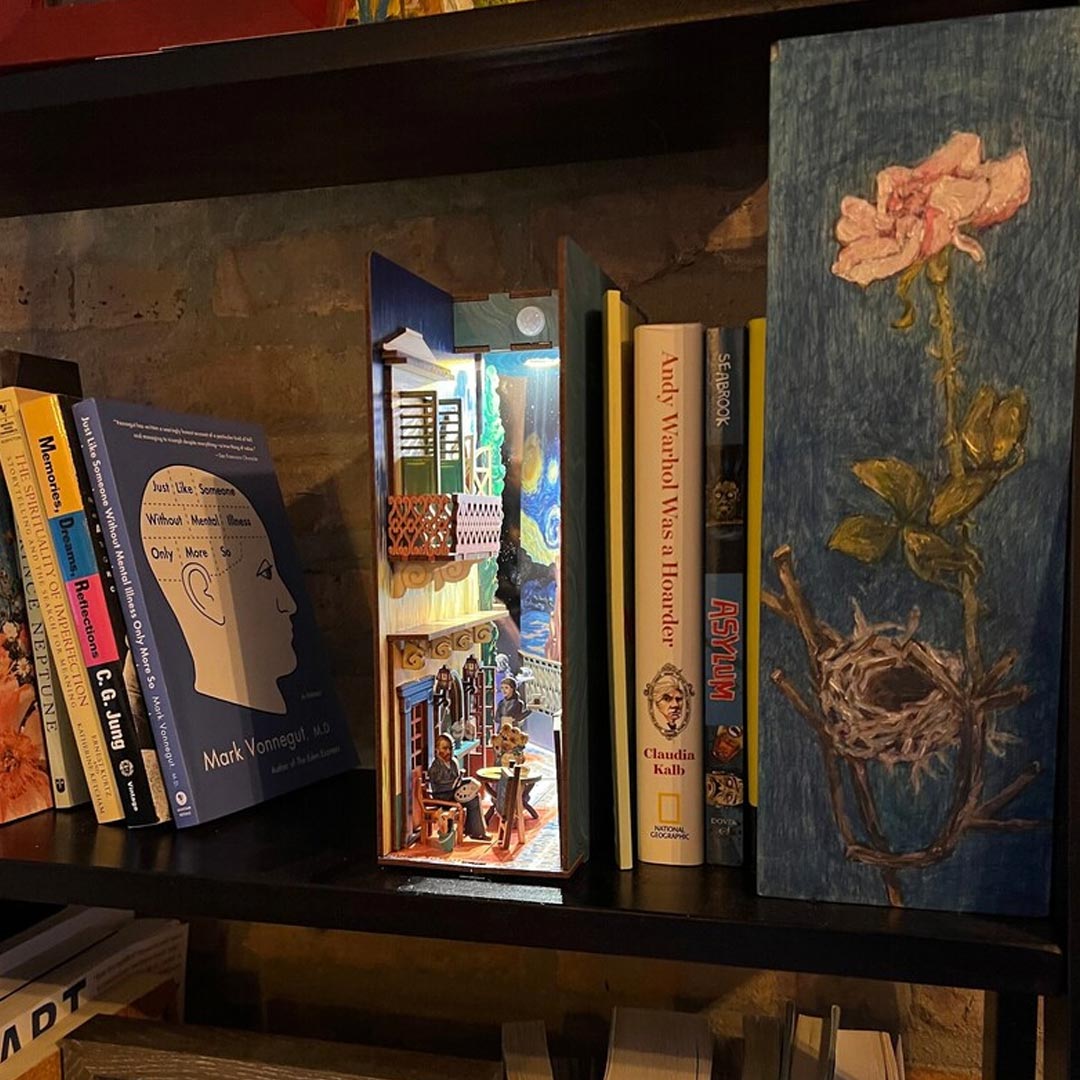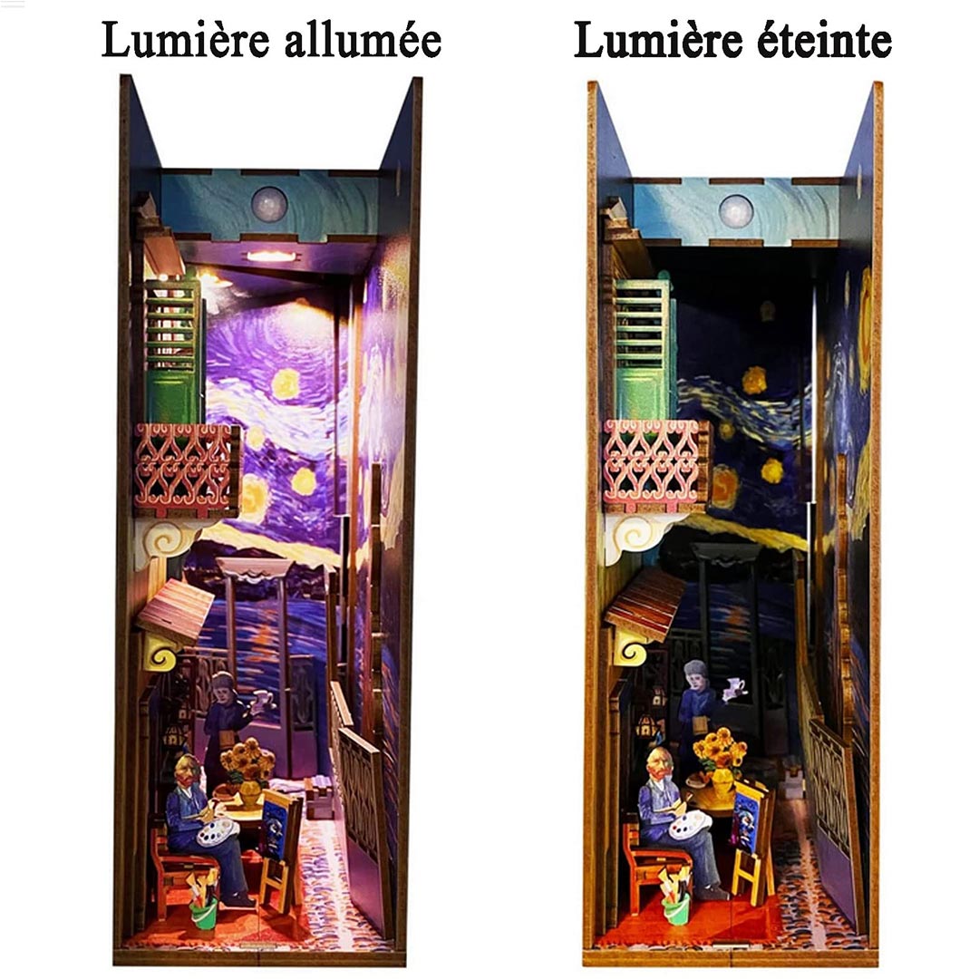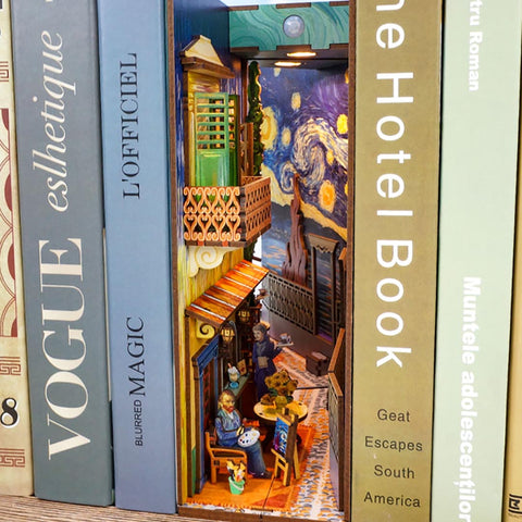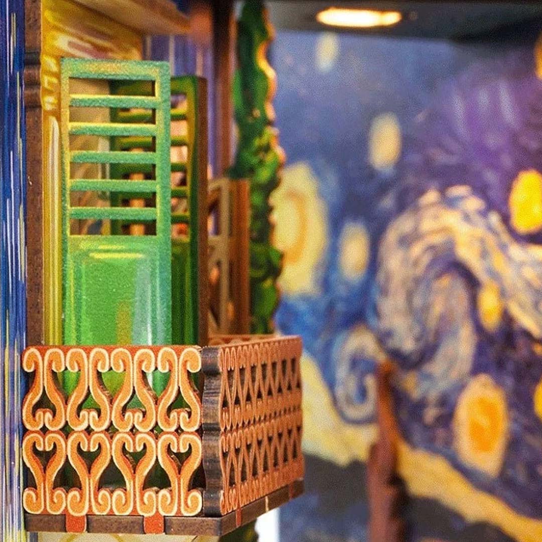 - Exquisite Craftsmanship – The book nook kit is made of high-quality wood. which is sturdy. durable. and easy to take out. We create the 3D handcrafted miniature bookshelf insert decor by the story about Van Gogh and his painting. The realistic setting of the scene perfectly restores the miniature world in the book corner.