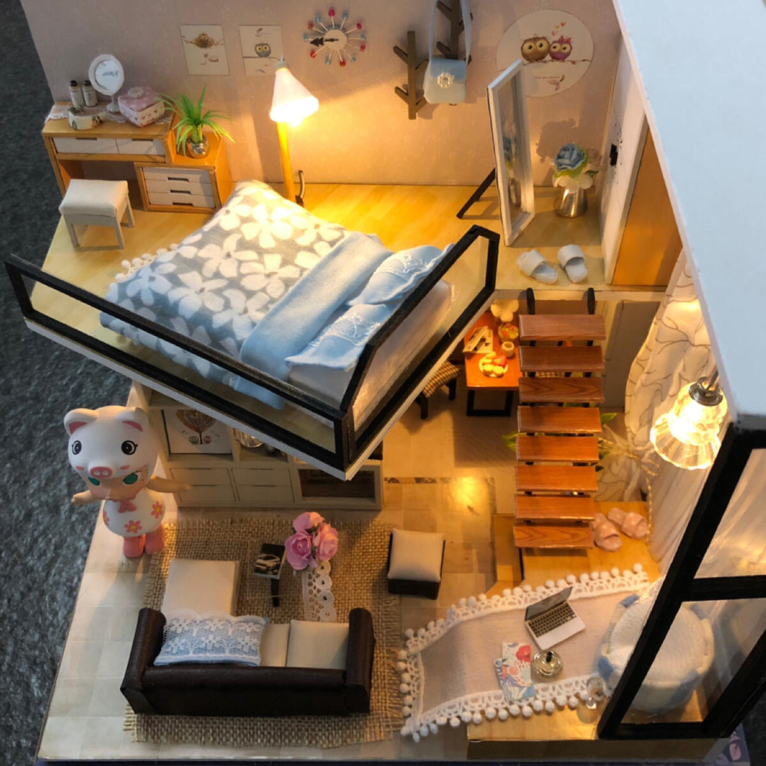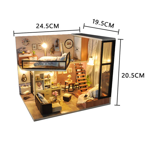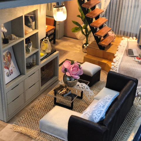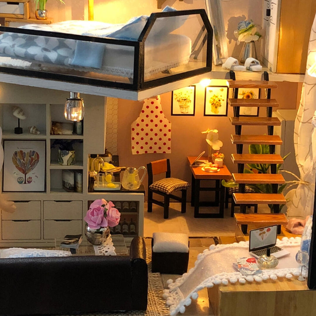 Experience the charm of modern living with the Warm Loft DIY Wooden Dollhouse Kit! This beautifully designed two-story loft is the epitome of comfort and style. featuring panoramic floor-to-ceiling windows that flood the space with natural light.
