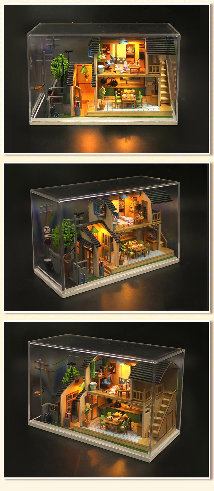 When you are choose to build up DIY miniature dollhouse kit. This new type is a good choice (battery and glue are not included. due to air transport not allowed)
